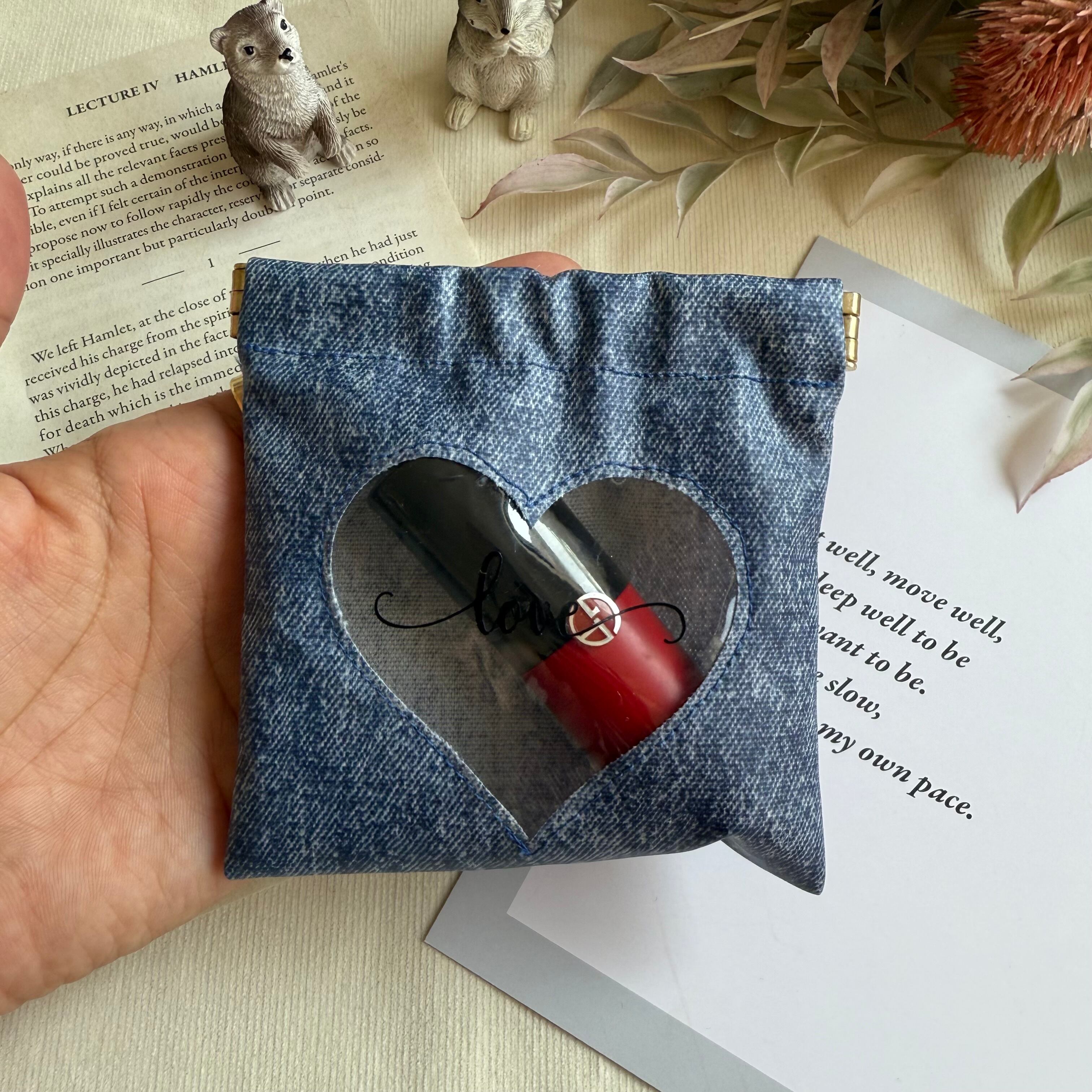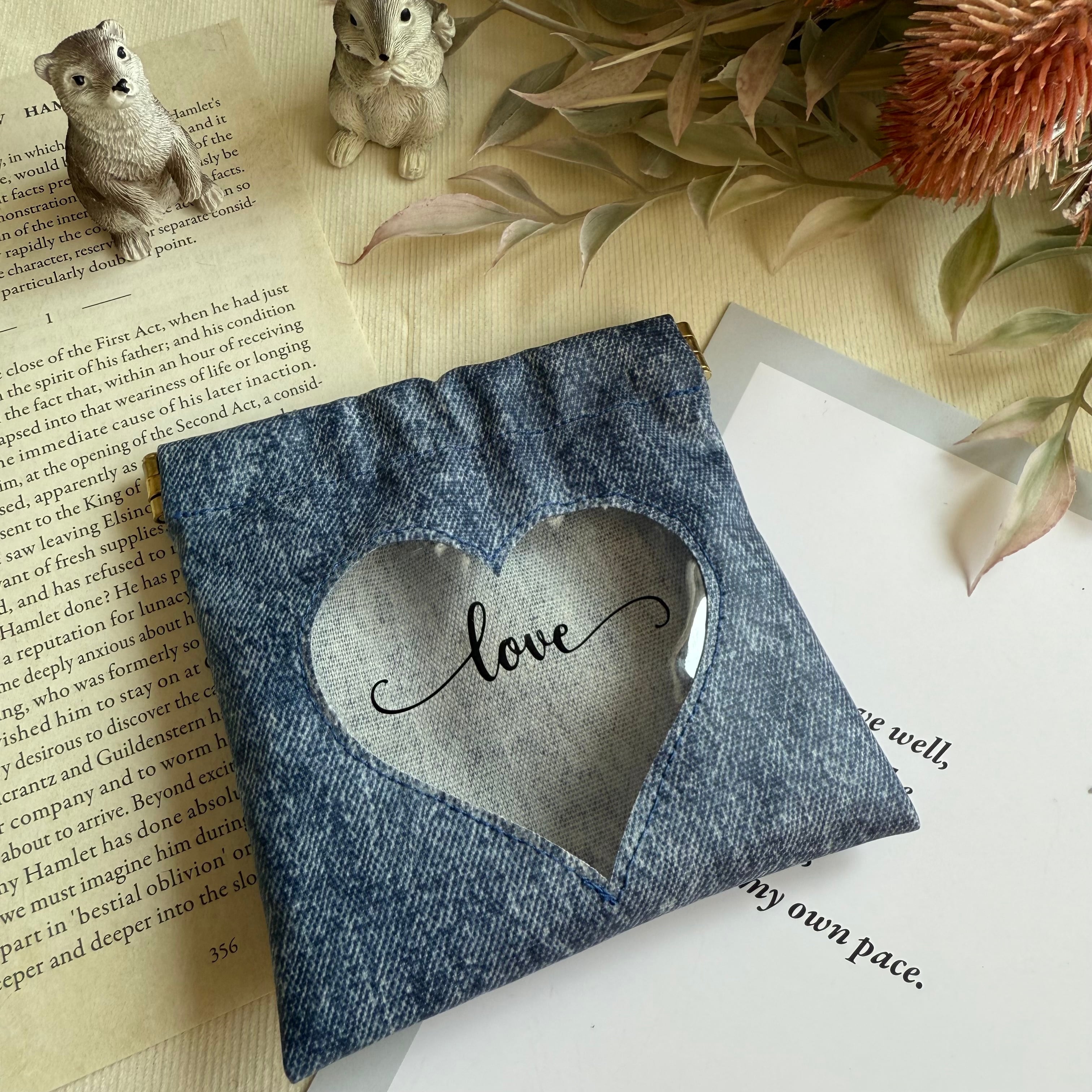【ハートの窓付きポーチ】デニム