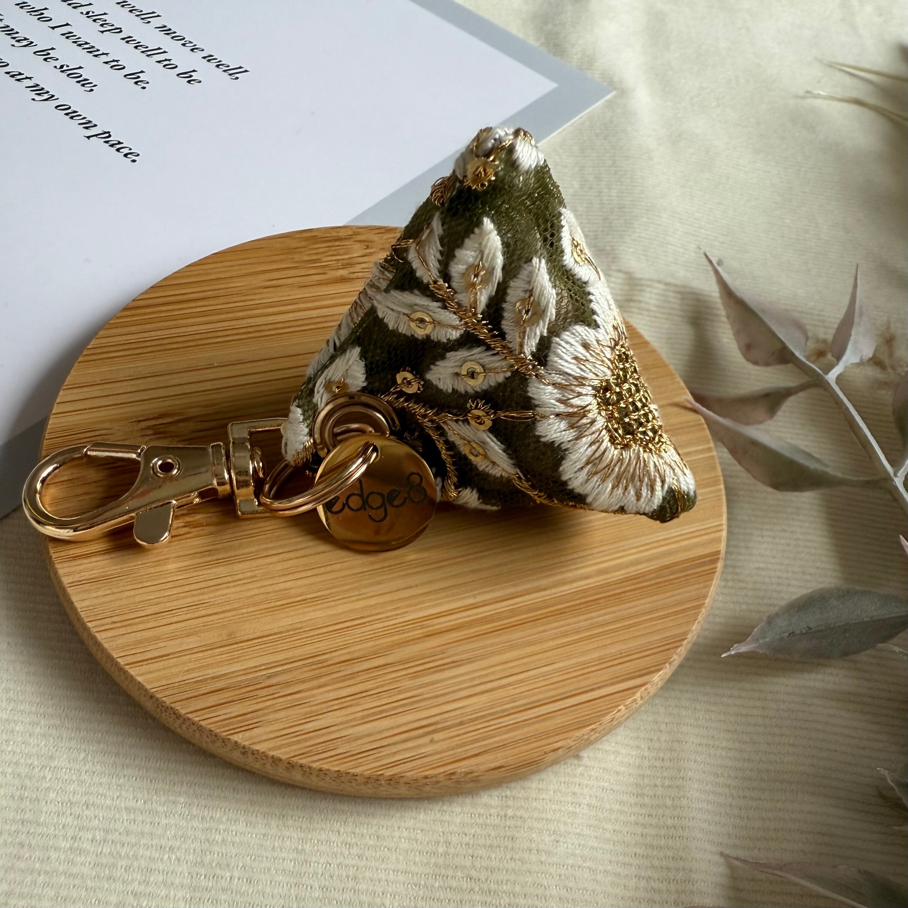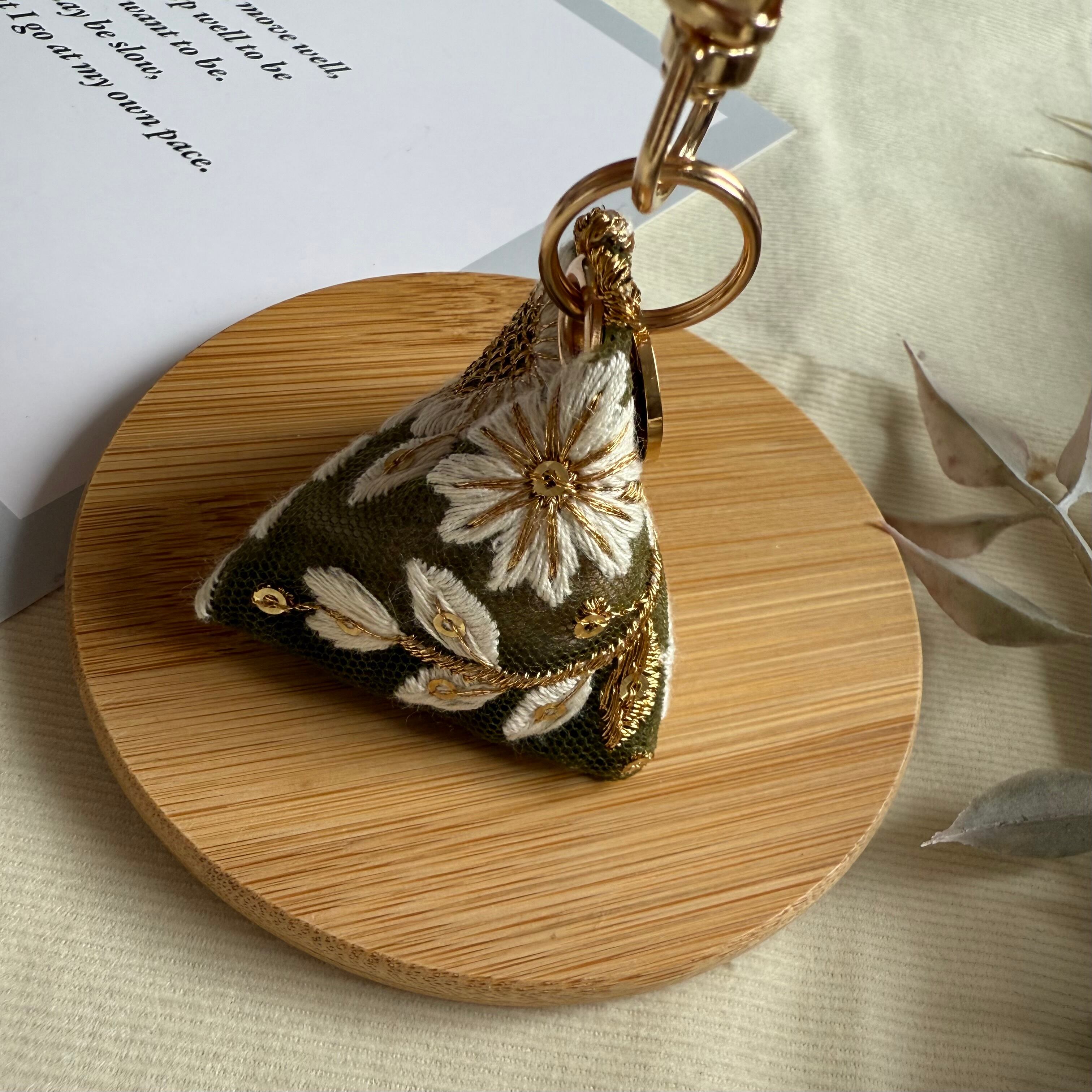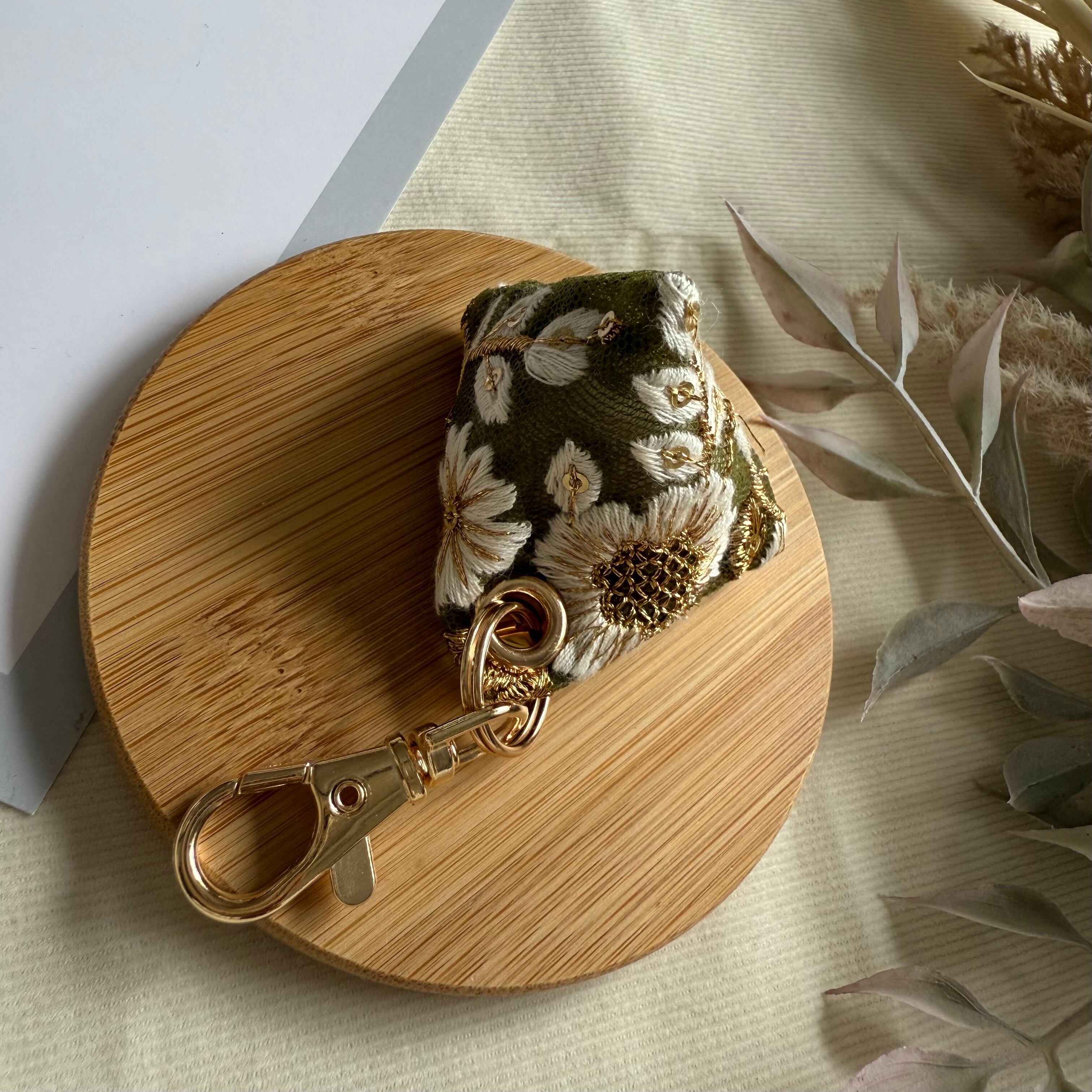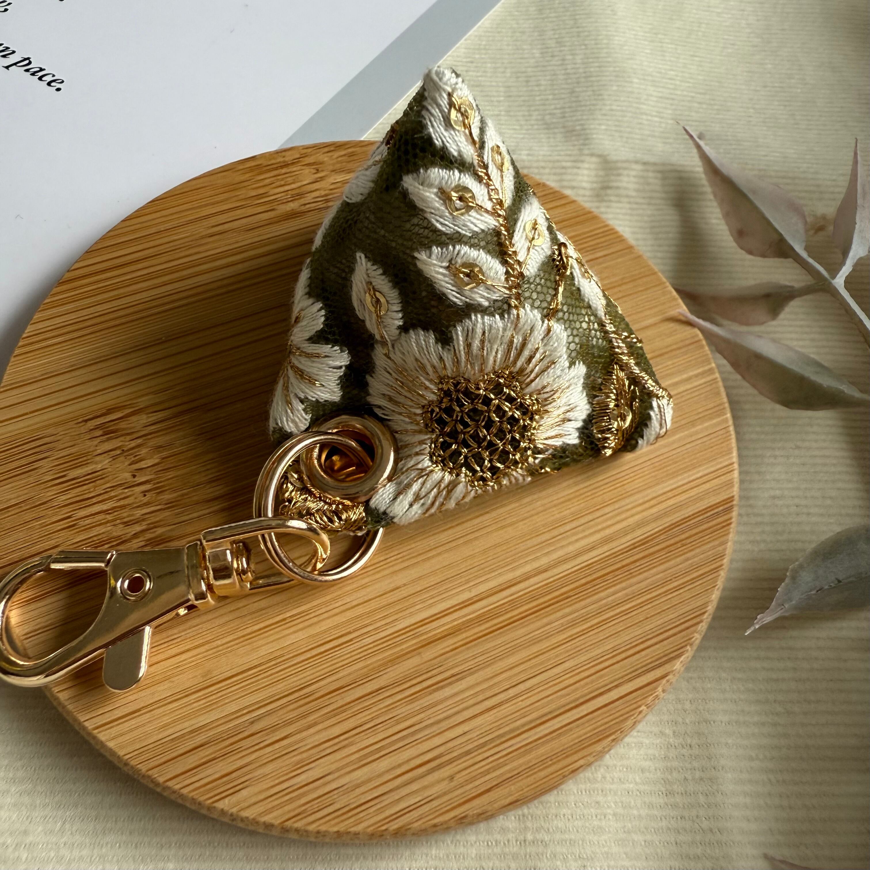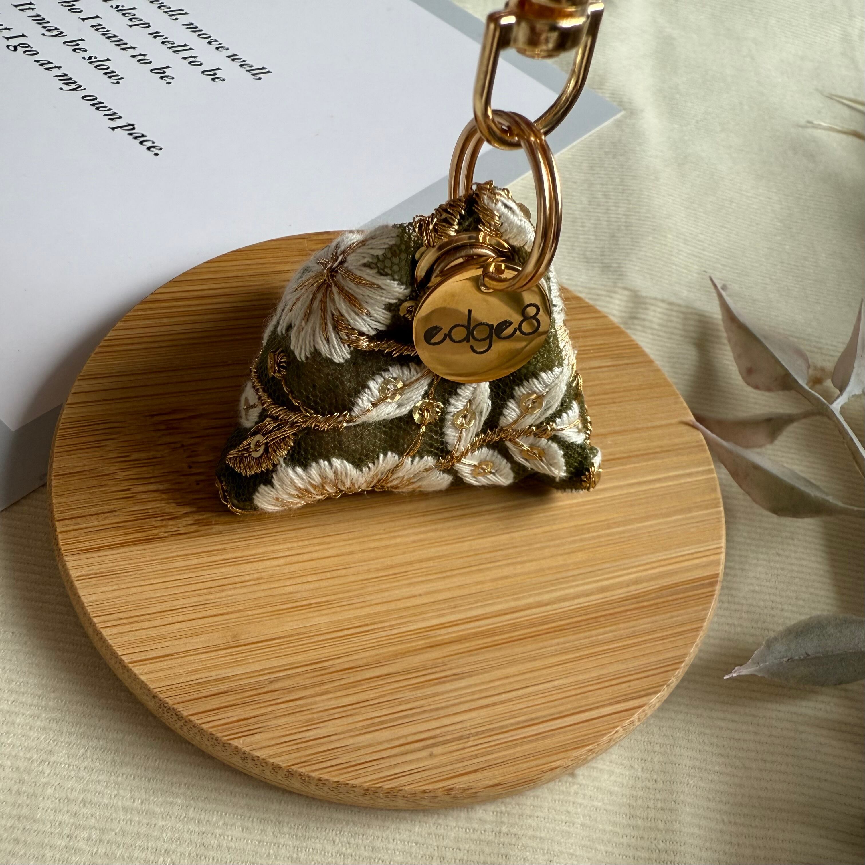 インド刺繍リボンで仕立てたミニサシェです。