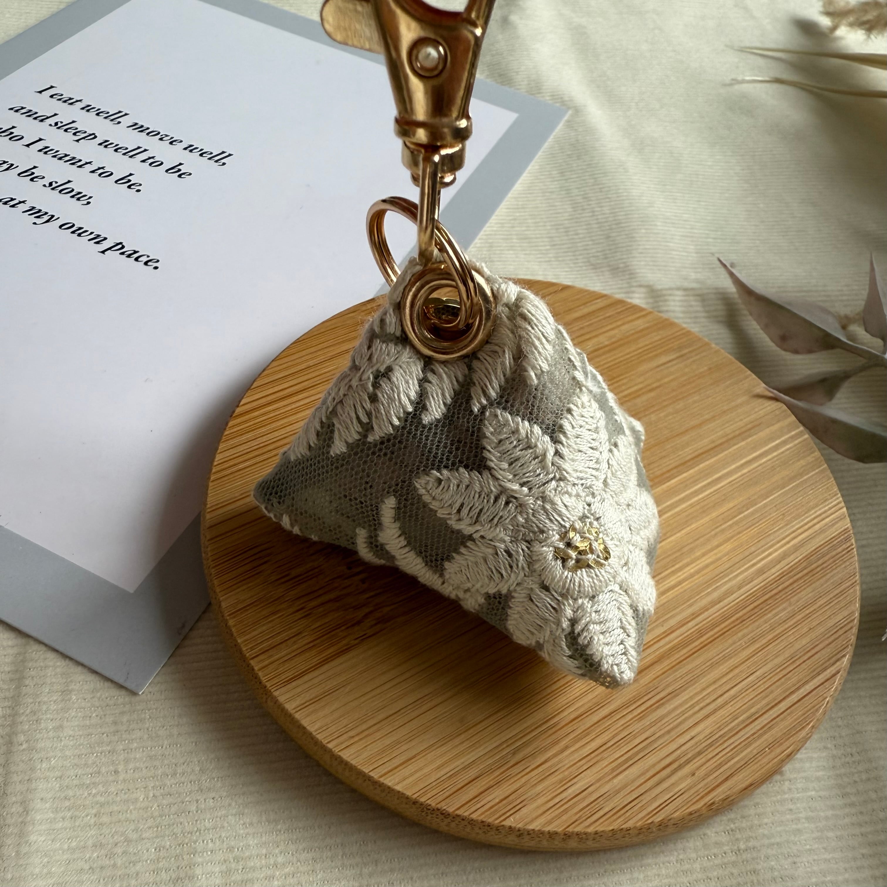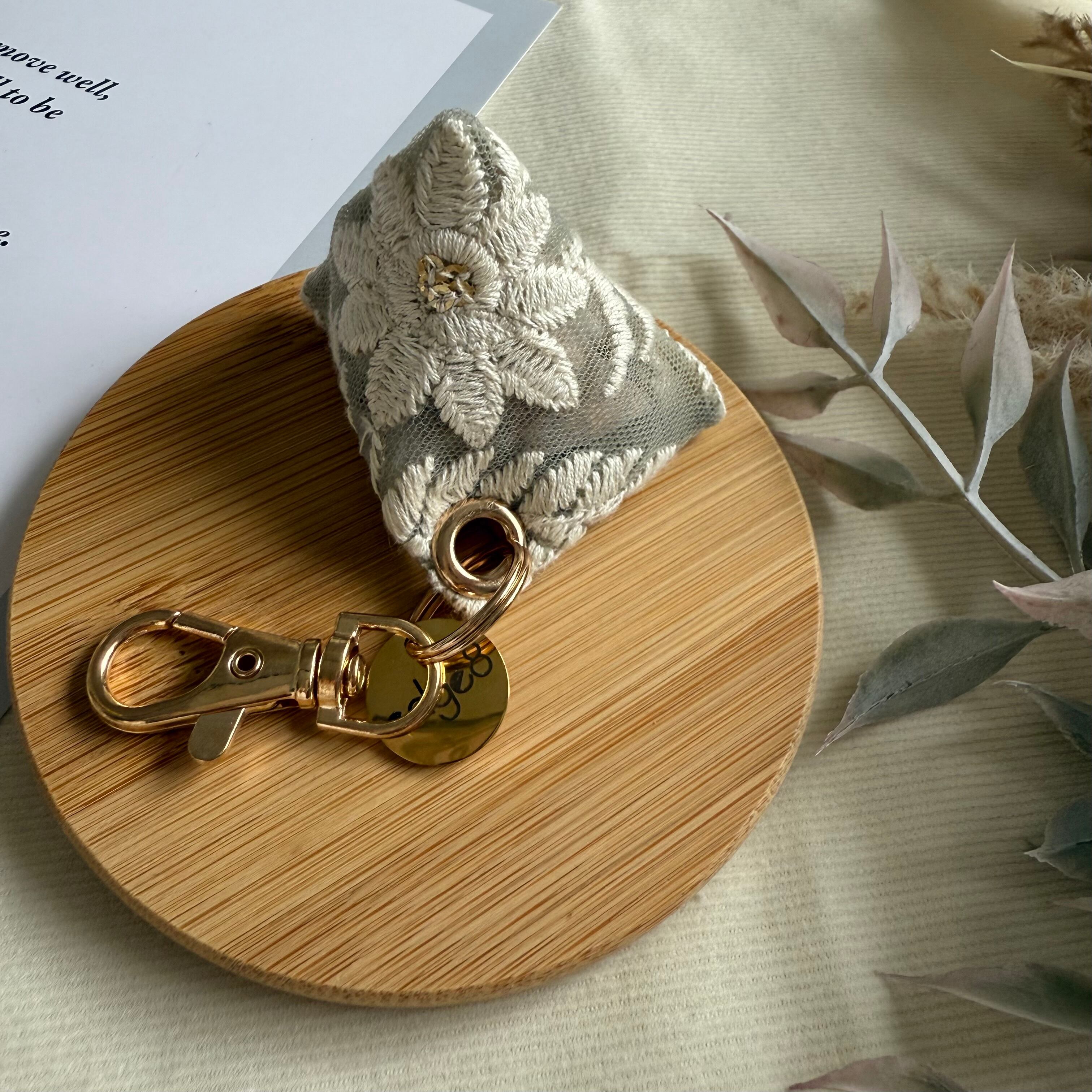 インド刺繍リボンで仕立てたミニサシェです。