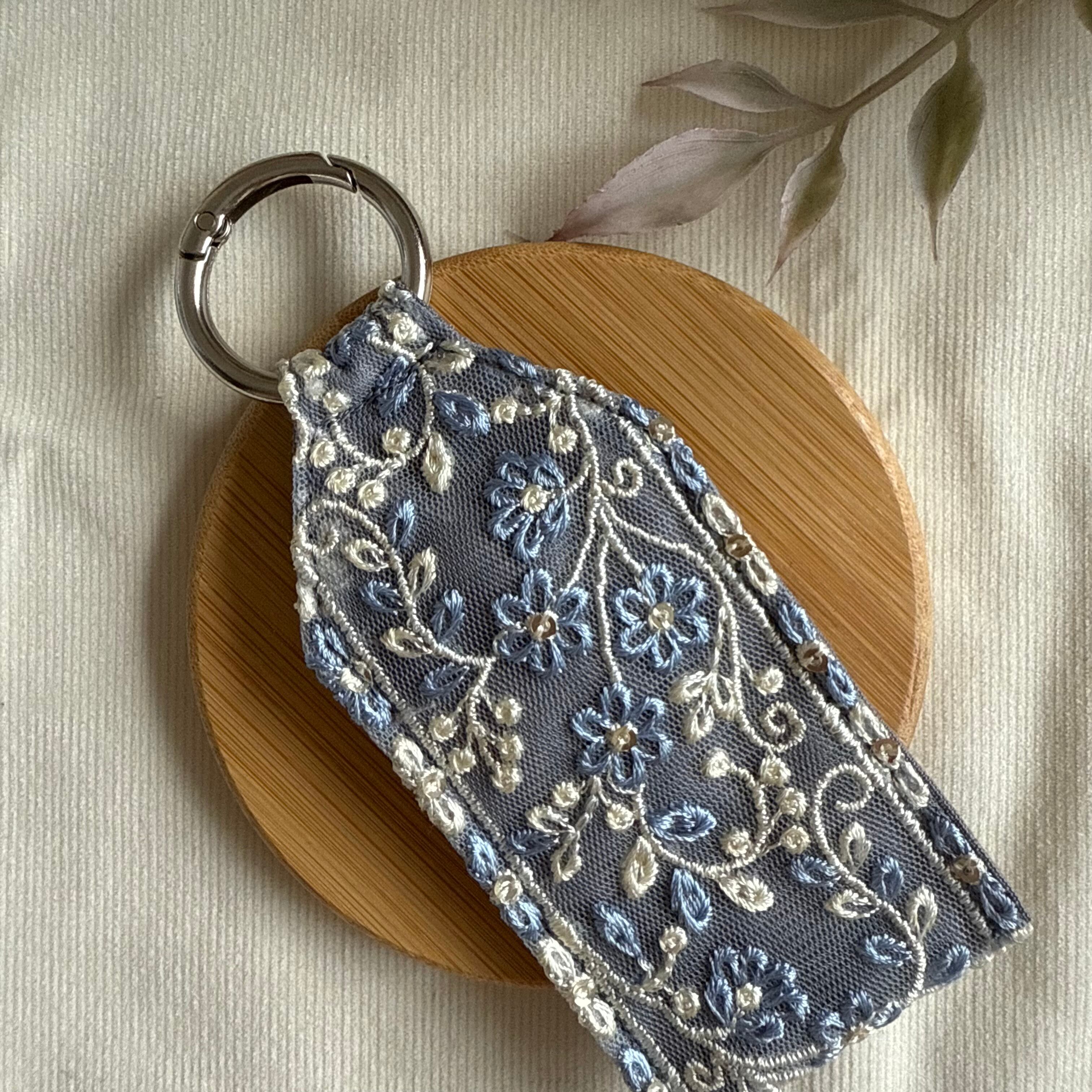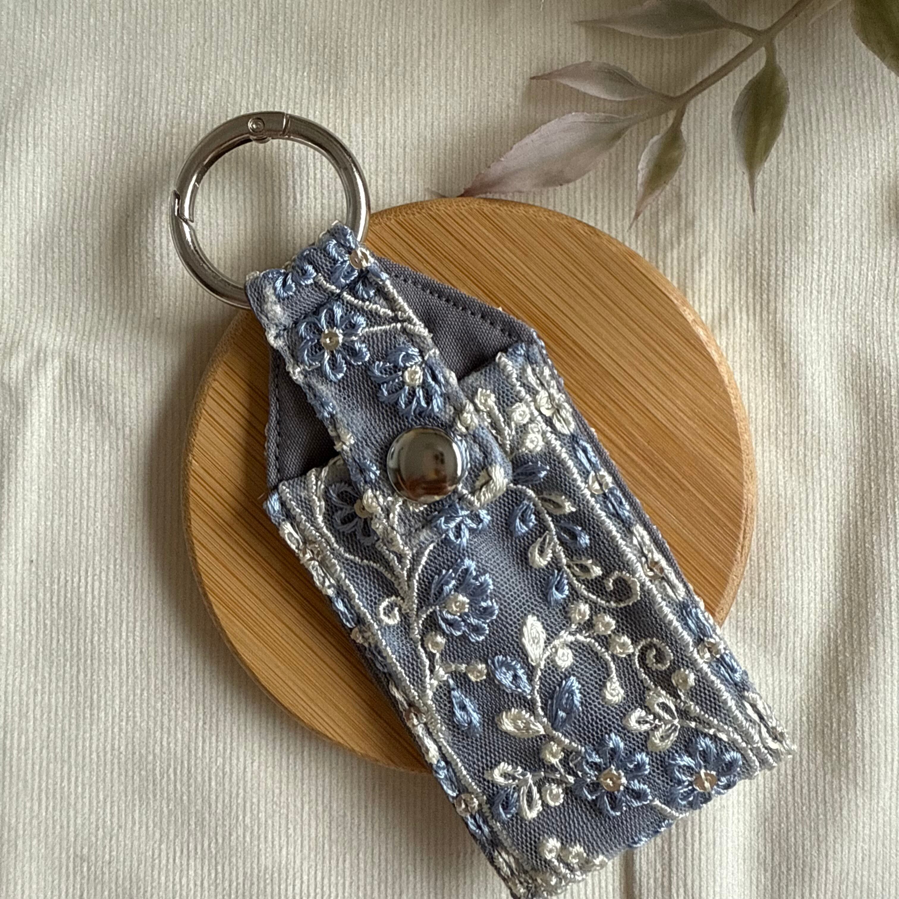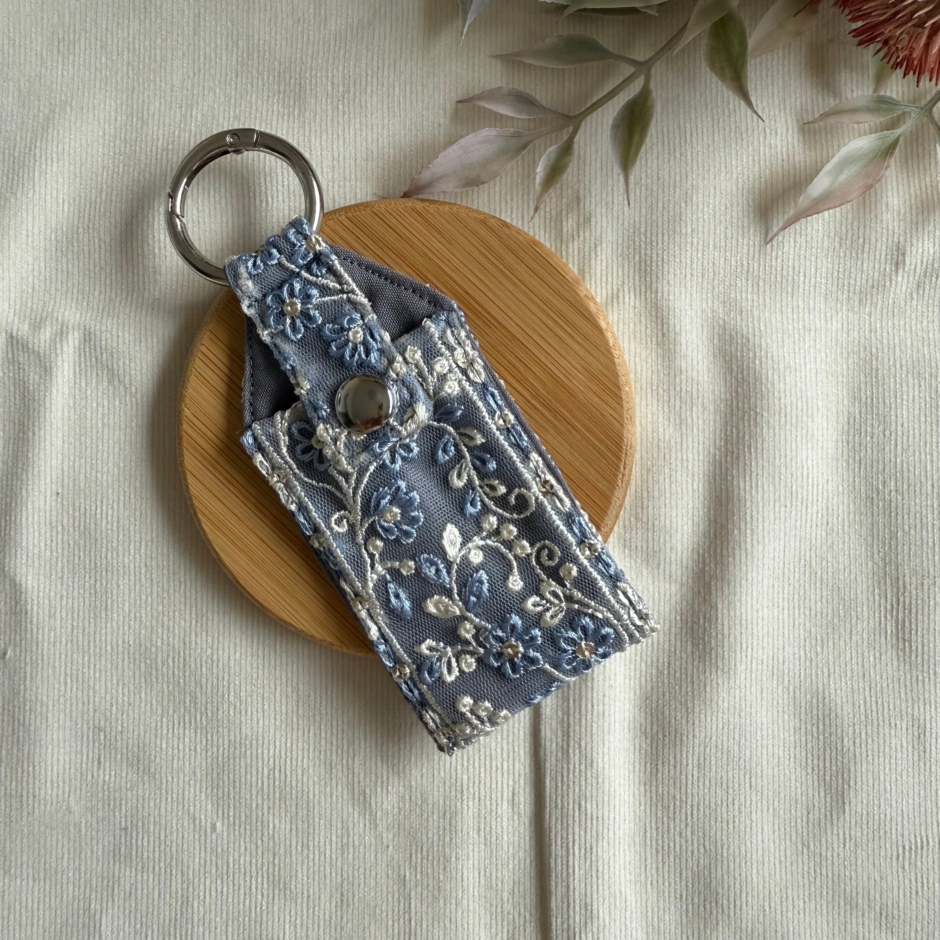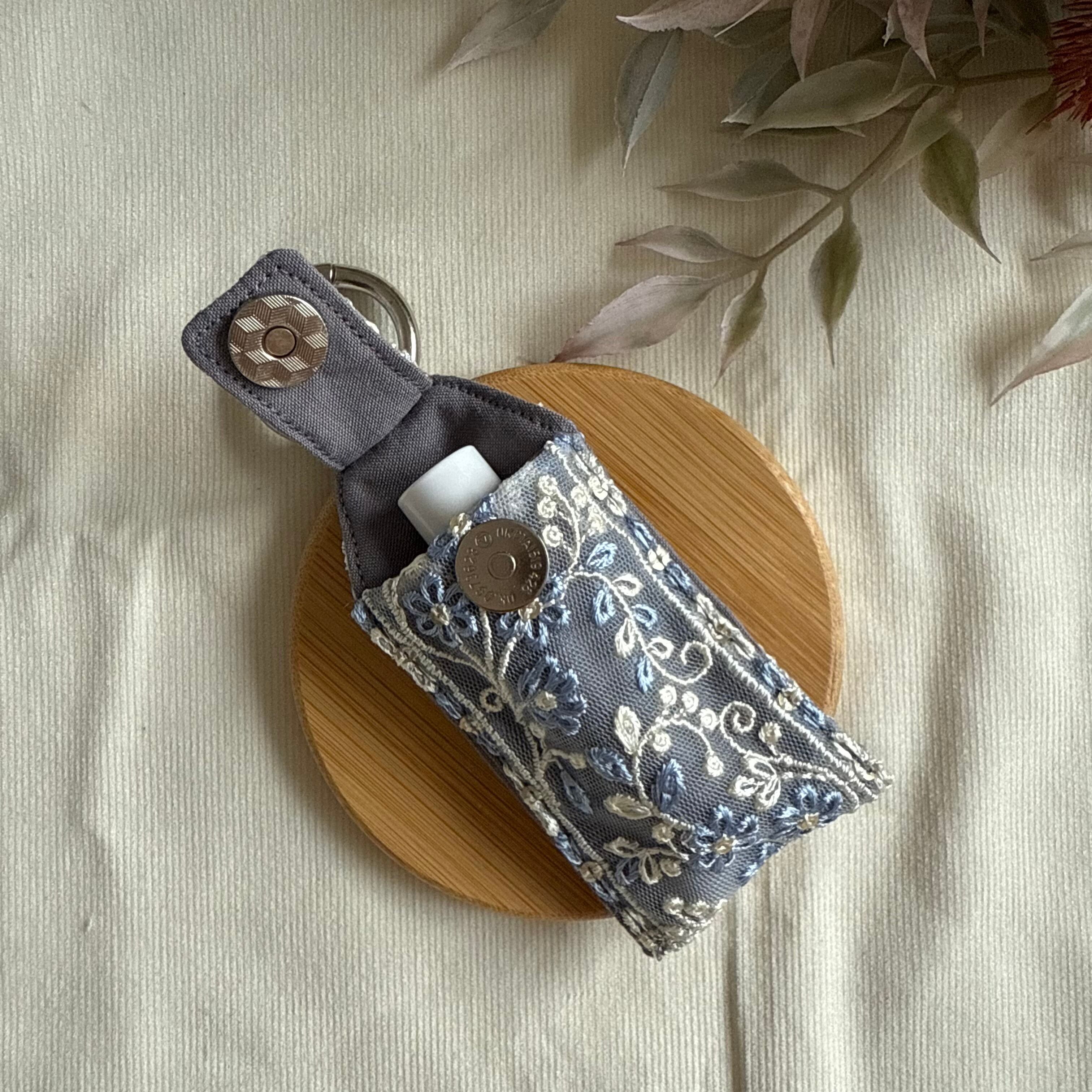【リップケース】刺繍リボン×ブルーグレー